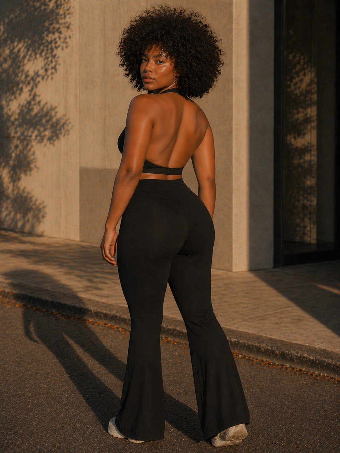 Designed with a deep neckline and open-back halter silhouette, it highlights without overdoing it.